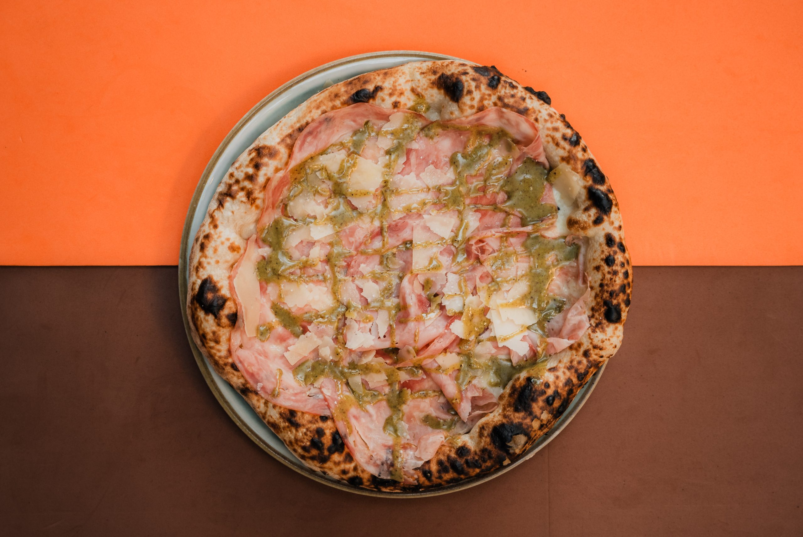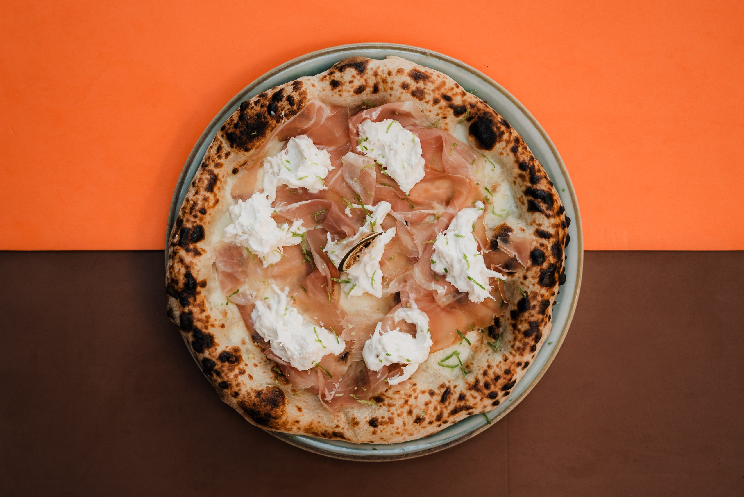 La nostra pizza speciale con mozzarella fior di latte artigianale, prosciutto crudo toscano pepatino, cremosa stracciatella pugliese, scorza di lime grattugiata e basilico fresco. Abbinala al nostro Spritz Corten: un mix unico di vermouth extra-dry, limoncello, crema di mandarino catanese e soda. Un’esperienza esclusiva firmata Corten!