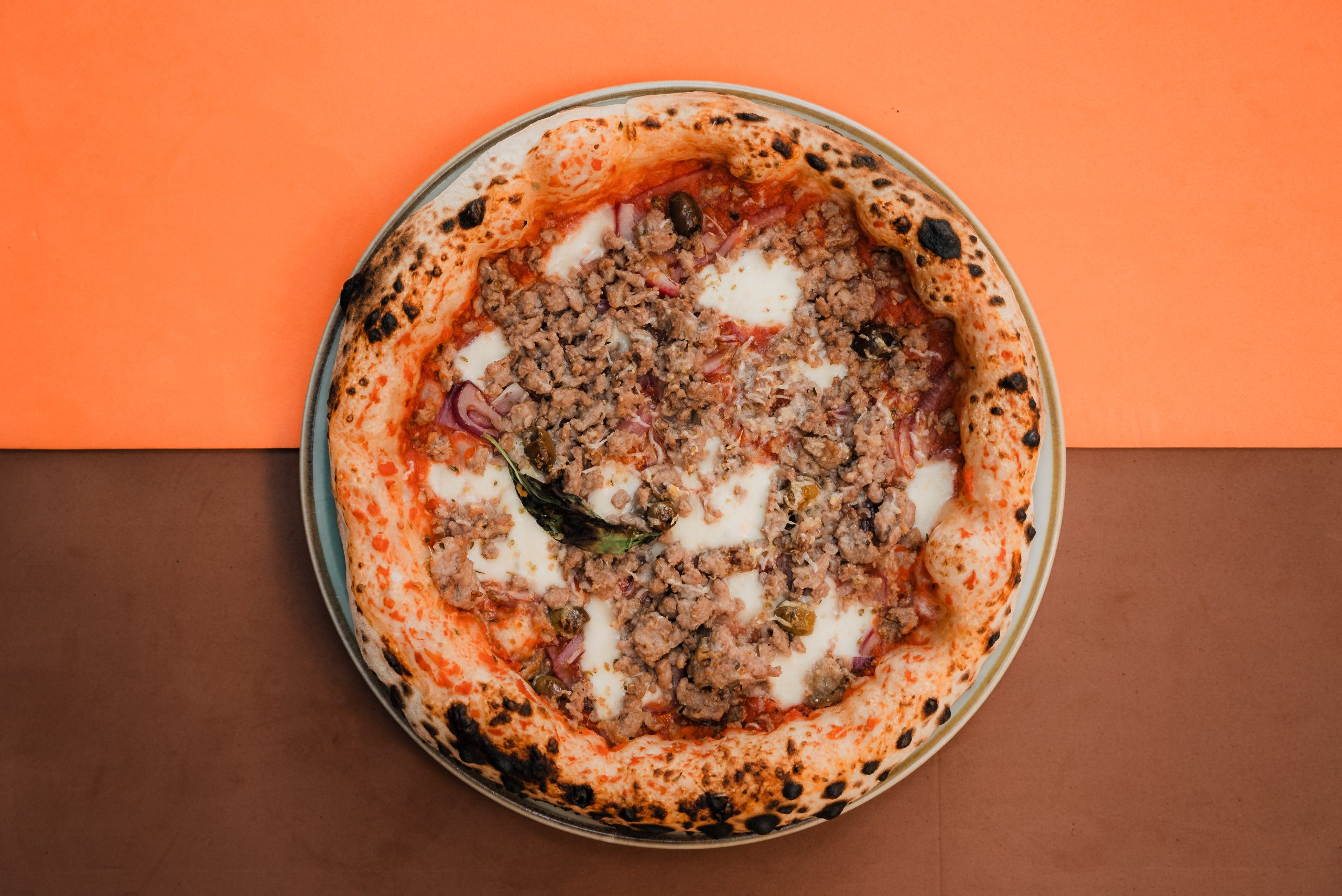 La pizza meno preferita dal tuo partner, ma sicuramente amata da te! Mozzarella fior di latte artigianale, cipolla dolce di Tropea, salsiccia tradizionale dell’Appennino, olive taggiasche, parmigiano reggiano di Sestola, origano selvatico e basilico. Abbinala al Tekken, una versione unica del Bloody Mary con mezcal, succo di pomodoro, salamoia di olive, tabasco, limone e pepe. Un abbinamento deciso e indimenticabile!